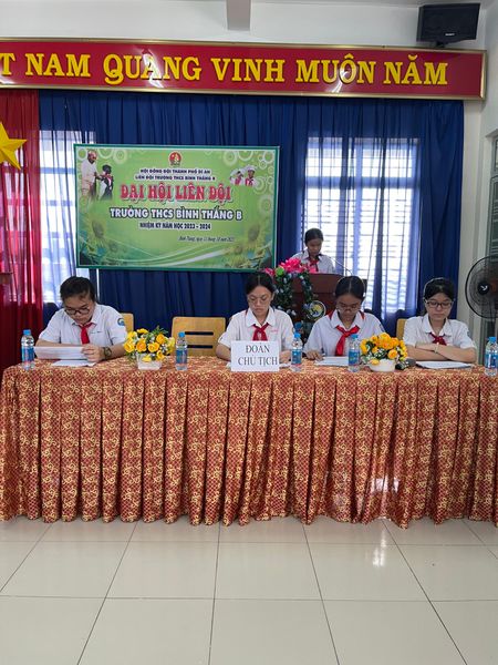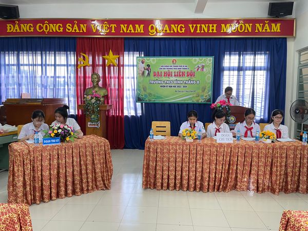 🌻🌻 Đến tham dự Đại hội có cô Vũ Thị Là - Phó Hiệu Trưởng trường THCS Bình Thắng B, cô Huỳnh Lê Phương Dung - Bí thư chi đoàn trường và 67 đội viên tiêu biểu đại diện cho 1513 đội viên về dự Đại hội. Đại hội đã thống nhất báo cáo tổng kết và dự thảo phương hướng hoạt động đội nhiệm kì 2023-2024.