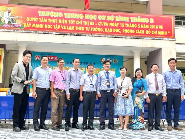 Tham dự chương trình có ông Nguyễn Văn Trãi – đại diện Sở Giáo dục và Đào tạo Thành phố Hồ Chí Minh, cùng Ban Giám hiệu của nhiều trường THPT và cơ sở giáo dục uy tín trên địa bàn. Về phía Trường THCS Bình Thắng B, thầy Tô Chí Thịnh – Hiệu trưởng nhà trường cùng các thầy cô trong Ban Giám hiệu đã có mặt đầy đủ, thể hiện sự quan tâm sâu sắc đến công tác định hướng tương lai cho học sinh.