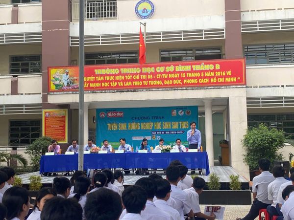 Sáng ngày 07/04/2026, tại Trường THCS Bình Thắng B, chương trình “Tư vấn hướng nghiệp – tuyển sinh phân luồng học sinh sau THCS năm học 2025–2026” đã được tổ chức thành công, tạo nên một không gian trao đổi sôi nổi và đầy ý nghĩa với sự tham gia của đông đảo đại biểu, thầy cô giáo cùng các em học sinh khối 9.